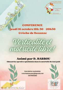 conférence sur les étapes et les enjeux de la verticalité de l'enfant et l'accès à la motricité libre dans l'enceinte de la crèche le jeudi 16 octobre à 18h30