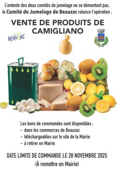 Vous êtes ici : Accueil > L’entente des deux comités de jumelage ne se démentant pas, le Comité de Jumelage de Beauzac relance l’opération : VENTE DE PRODUITS DE CAMIGLIANO
