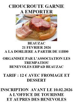 Vous êtes ici : Accueil > Samedi 21 février 11h Choucroute en drive des Trempatiou – La Dorlière