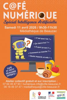 Vous êtes ici : Accueil > Café numérique dédiée à l’Intelligence Artificielle le samedi 11 avril 2026 à 9h30 à la Médiathèque la parenthèse de Beauzac.